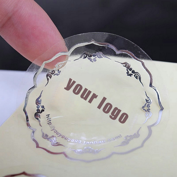 Atacado Personalizado Transparente claro Auto-adesivo Hot Gold Foil Stamping Adesivos Etiquetas